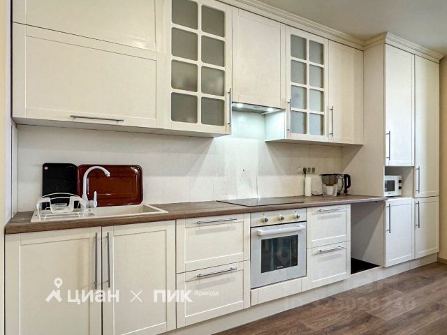 - бытовая техника (вся встроенная): варочная панель, вытяжка, духовой шкаф, микроволновая печь, посудомоечная машина, холодильник, стиральная машина,