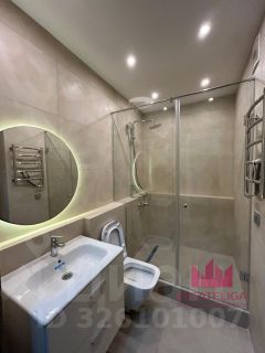 * Второй с современной душевой кабиной 100х100, унитазом и небольшим умывальником и зеркалом с подсветкой.