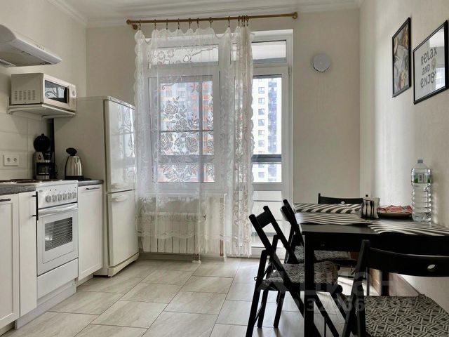 В кухне красивый новый кухонный гарнитур,обеденный стол,холодильник,плита,микроволновка,стиральная машина,электрический чайник,фильтр для воды,современная качественная посуда. Чай,кофе,сахар,масло,соль,специи.