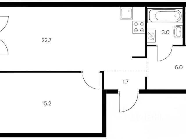 Функциональная планировка апартамента, разработанная по индивидуальному проекту: просторная кухня с обеденной зоной и кухонным гарнитуром и бытовой техникой, зона гостиной с диваном, изолированная спальня с выходом на балкон, совмещенный санузел, просторный балкон с панорамным остеклением, где расположилась зона отдыха.