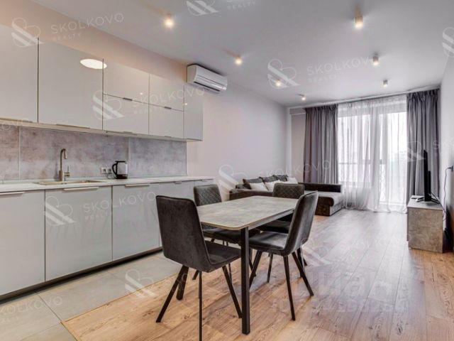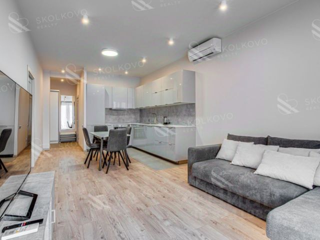 В квартире просторная светлая кухня-гостиная с панорамными окнами в пол и балконом , большой совмещенный санузел, гостевой санузел, две изолированные комнаты, в одной из которых панорамные окна в пол и балкон.