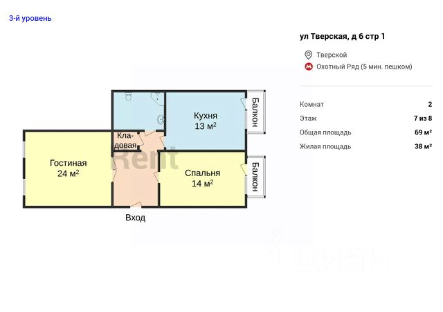 • ✓ В базе Циан 53 2-комнатных квартир с балконом рядом с метро Пушкинская