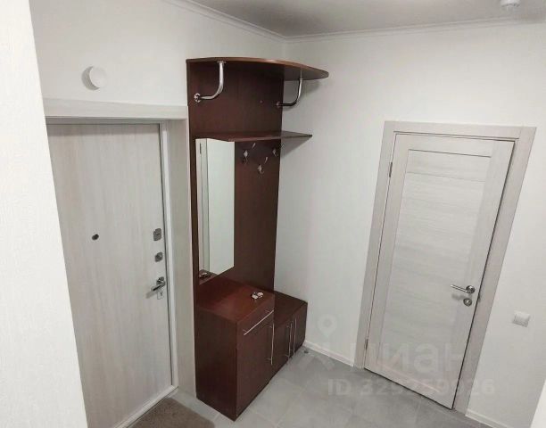Просторная прихожая с парящим зеркалом в потолок встречает легкостью, вместительный встроенный шкаф и большой санузел с ванной добавляют удобства.