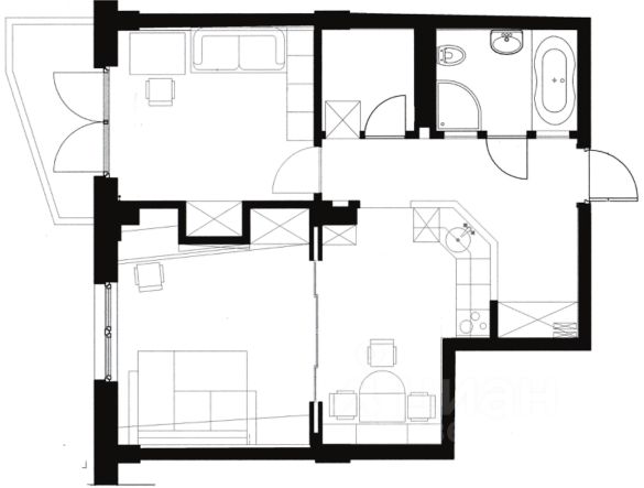Общая площадь 54 м2, гостиная 22 м2, спальня 12 м2, кухня 9 м2, санузел раздельный, застекленный балкон. Установлены кондиционеры в обеих комнатах.
