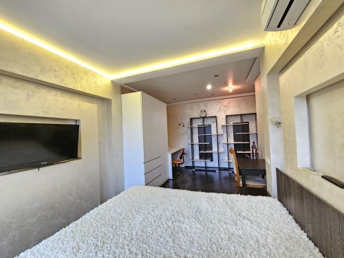 Ремонт 2022 года: замена обоев, межкомнатных дверей. Выполнен полный ремонт в санузле (плитка). Полы паркет (отциклеван). Окна, лоджия ПВХ, новая металлическая дверь. Кухонный гарнитур встроенный, двуспальный диван - новые. Модульная мебель, компьютерный стол. В спальне встроенный шкаф-купе, двуспальная кровать (новый матрац ортопедический). Вся бытовая техника в наличии (включая кондиционер, посудомоечную машину). Длительный срок найма, страховой депозит в рассрочку на два месяца.