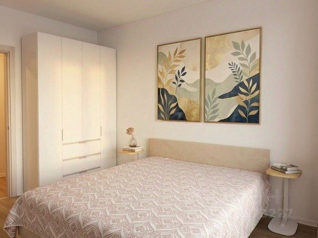На площади 46 кв.м. реализованы две изолированные комнаты, просторная кухня-гостиная, а также два санузла.