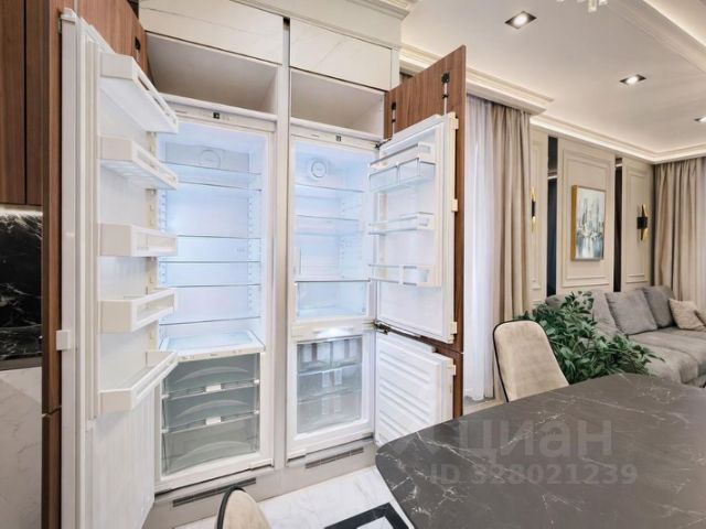 Квартира полностью укомплектована и готова к заселению: сделан дизайнерский ремонт из премиальных материалов, продуман свет, сценарии освещения и эргономика. Установлена техника: холодильник Liebherr, посудомоечная машина, кондиционеры, стиральная машина, телевизоры. Система Умный дом позволяет управлять освещением и шторами, создавая комфорт и экономя время.