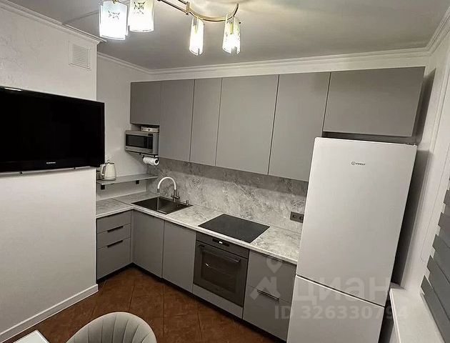 Новая мебель (двухспальная кровать с ортопедическим пружинным матрасом от фирмы Аскона, диван, шкаф вместительный 4-х-створчатый в комнате и шкаф с антресолями в прихожей, комод, прикроватная тумба), встроенная кухня.
