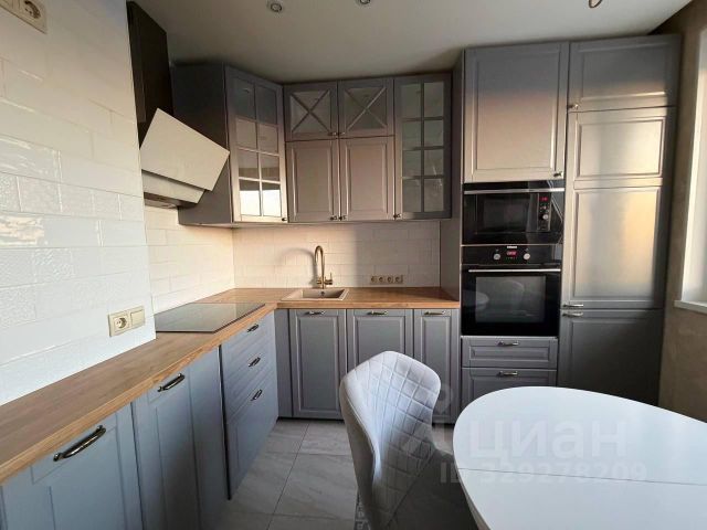 Кухонная зона оборудована: кухонным гарнитуром, обеденным столом и двумя-табуретами, двухкомфорочной электрической плитой, Свч, электрическим чайником, двухкамерным холодильником No Frost, мягким кожаным диваном. Имеется посуда (кастрюли, сковородки, тарелки, чашки, бокалы, салатники, ножи, ложки и вилки).