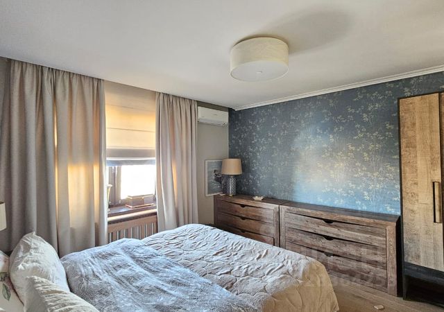 Квартира с двумя изолированными комнатами и высотой потолков 3,3 метра обескураживает своим простором и светом. 3 окна выходят в тихий двор, обеспечивая отличную инсоляцию внутреннего убранства. Ремонт выполнен по индивидуальному дизайн-проекту из качественных материалов: полы в жилых помещениях выполнены из элитного бельгийского дубового паркета, межкомнатные двери покрыты натуральным шпоном, установлены качественные и тихие окна, в каждой комнате имеется отдельная премиальная сплит-система, подогрев полов в коридоре, ванной и кухне с сенсорным управлением и возможностью программирования режимов работы, премиальная бытовая техника, включая посудомоечную и стиральную машину с сушкой, систему очистки воды (и подогрева воды на период летнего профилактического отключения), высокоскоростной интернет, телевизоры с диагоналями 55 дюймов. В коридоре и комнатах установлены огромные встроенные шкафы, создающие функциональные зоны хранения. В спальне установлена огромная двуспальная кровать с ортопедическим матрасом. В гостиной имеется комфортное рабочее место с большим письменным столом.