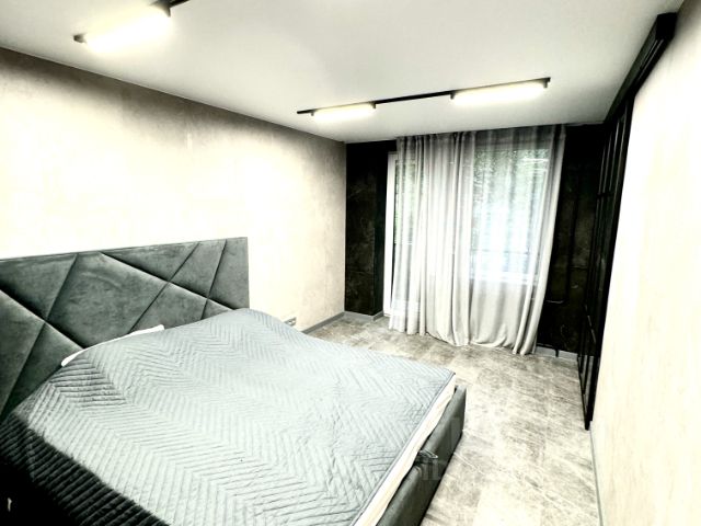 Большая комната - спальня-гостиная оформлена в восточном стиле. Угловой диван разбирается в двуспальный. Хорошее ортопедическое основание с индивидуальными пружинами. Одному можно спать не разбирая. Шкафы, комод, раскладной стол, компьютерный стол. Большое окно во всю стену. Деревянный стеклопакет. Выход на застеленную лоджию 8 кв.м.
