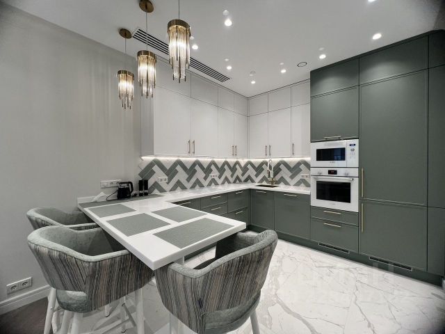 Привезённая из Италии кухня Modulnova с кожаными стульями Cattelan Italia, полностью оснащённая самой лучшей в мире техникой Gaggenau. €10 000 стоит один духовой шкаф.