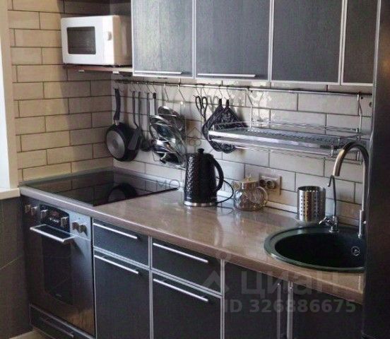 Сдается светлая и просторная квартира в тихом спальном районе. Внутри есть все необходимое для комфортной жизни. В гостиной стоит стильный изумрудный диван и телевизор. Спальня оборудована большой кроватью. Кухня совмещает рабочую зону и место для отдыха с мягким диваном. Из окон открывается красивый панорамный вид на город. В прихожей установлены шкафы для одежды и комод с зеркалом. Район очень спокойный и зеленый. Рядом находятся сетевые магазины и школы. До метро можно дойти пешком или быстро доехать на транспорте. Во дворе много мест для парковки автомобиля. Квартира полностью готова к заселению новых жильцов.