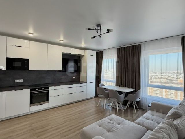 Полностью укомплектованая кухня-гостинная с техникой (индукционная варочн. панель, вытяжка, СВЧ, духовой шкаф, холодильник, ПММ на 60), стиральная +сушильная машина (2 в 1), два тв самсунг по 43 дюйма каждый (смарт тв), пылесос, стационарная сушка, роутер. Вся техника новая.