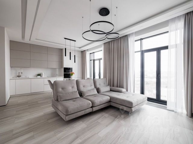 Выполнен качественный ремонт в светлых тонах с использованием дорогостоящих натуральных материалов. Подвесной потолок с многоуровневым освещением. Сделана шумоизоляция, в том числе у соседей сверху и снизу. Квартира укомплектована техникой ведущих производителей (Liebherr, Bosch, Siemens, LG, Sony). Кондиционеры установлены в спальне и на кухне. В санузлах сантехника Duravit (Germany), Villeroy & Boch (Germany). Стиральная, сушильная машина. Теплые полы в прихожей и санузлах. Грамотная разводка, везде есть розетки. Окна во всех комнатах оборудованы жалюзями.