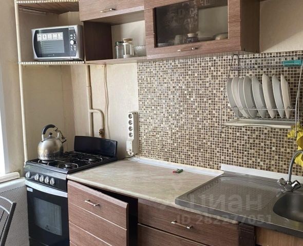 Квартира оборудована всей необходимой мебелью и техникой, включая холодильник, стиральную машину, газовую плиту, духовой шкаф, микроволновую печь, электрочайник, пылесос, утюг и два небольших телевизора.