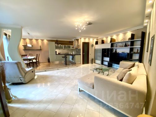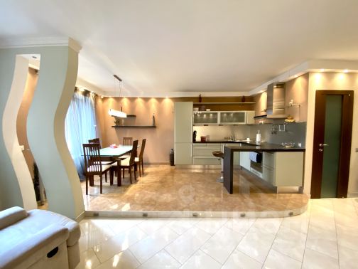 Меблировка: два двуспальных дивана: размеры спальных мест 160х200 и 140х200, 5 гардеробных шкафов, комод, рабочий уголок, журнальный стол, кухонный гарнитур, обеденный уголок.