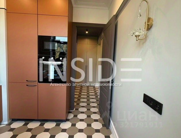 В двух комнатах панорамные окна с красивейшим видом на парк и закаты. Потолки более 3м. Пожарная сигнализация с датчиками дыма, система кондиционирования. Просторная прихожая. Отдельная гардеробная комната. Кухня совмещена с гостиной (24м²): современная кухня с резным порталом и выездными колонами. Встроенная техника: стиральная и посудомоечная машина, духовой шкаф, холодильник, вытяжка. Обеденный стол с мягкой зоной и раскладным диваном на двоих. Большой ЖК-Телевизор. Изолированная спальня (17 м²): двуспальная кровать с двумя тумбочками, комодом, туалетным столиком с зеркалом и креслом. Шторы блэкаут. Совмещённый санузел с душевой кабиной. Теплый пол везде где плитка: коридор, санузел, кухня. Централизованное кондиционирование с настенного встроенного пульта