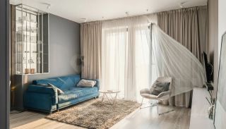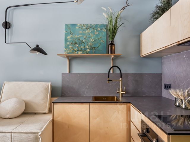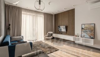 Кухня- настоящий рай для кулинара - оборудована практичной мебелью с встроенной техникой: варочная панель, духовка, вытяжка, посудомоечная машина (все -Electrolux), холодильник Liebherr. Кухня соединена с гостиной (17.7 кв.м), где разместились обеденный стол и гостевой гобеленовый диван, кондиционер, возможно установить телевизор и аудиосистему.