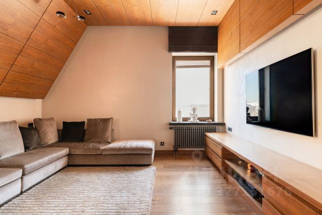 Планировка квартиры: через общий холл первого уровня попадаете в три разделенные дверными проходами квартиры, которые могут быть как разделены друг от друга, так и в виде общего объекта пользования: каждая из трех квартир имеет на первом уровне кухню-гостиную от 30 до 60 кв. метров, гардероб, туалетную комнату, камин на дровах и т.д. Каждая из трех квартир имеет выход на второй уровень в зону отдыха (спальня от 21 до 40 кв. метров), ванная комната, гардероб, рабочая зона. Интерьер: вся мебель и весь свет были изготовлены по индивидуальному проекту. Современная инженерия обеспечивает абсолютный комфорт, а самый настоящий дровяной камин подарит владельцам домашний уют. В квартире профессиональная система увлажнения, общедомовая система приточно-вытяжной вентиляции, локальная приточная вентиляция во все помещения, высота потолка 5,6 метров, уникальное панорамное остекление, виды на набережную реки Яуза, два дровяных камина, эл. управление шторами и многое другое.