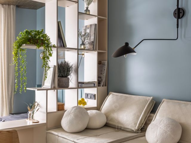 Кабинет (11 кв.м) оборудован рабочим столом и шкафом, может быть дополнен раскладным диваном.