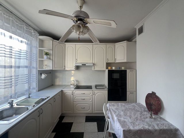 — На кухне ( 13м ) вся необходимая мебель , раскладной диван. Вся бытовая техника, в том числе мелкая. Имеется духовка, фильтр для воды, посудомоечная машина. Бытовые, кухонные принадлежности.
