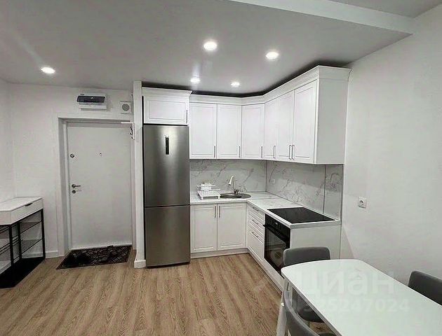 Кухня: итальянский гарнитур из массива в классическом стиле, столешница из чёрного камня, встроенный холодильник с ледогенератором Liebherr, варочная панель и духовка Bosch , посудомоечная машина Electrolux. Стоит новая очистная система воды. Эффектная люстра из чёрного стёкла. Шторы на заказ.