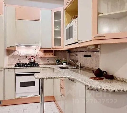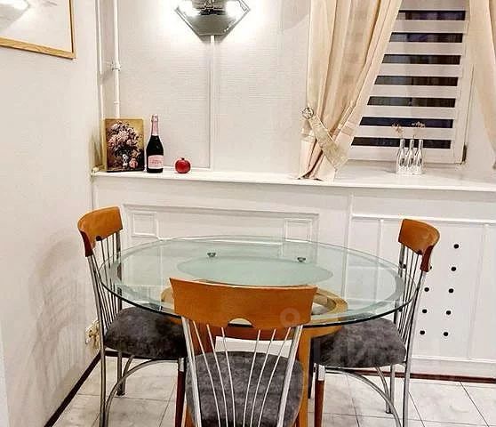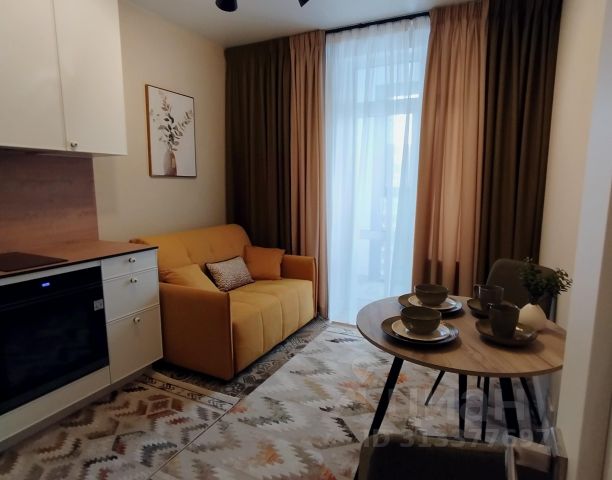КУХНЯ-ГОСТИННАЯ с выходом на застекленную лоджию, встроенный кухонный гарнитур со всей бытовой техникой: встроенная система очистки воды, встроенный 2х камерный холодильник, посудомоечная машина, варочная панель, встроенная духовка с функцией микроволновки, чайник. Компактный круглый стол со стульями, раскладывающийся диван.