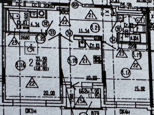 Две изолированные комнаты (~12 м² каждая), разделённые коридором:
