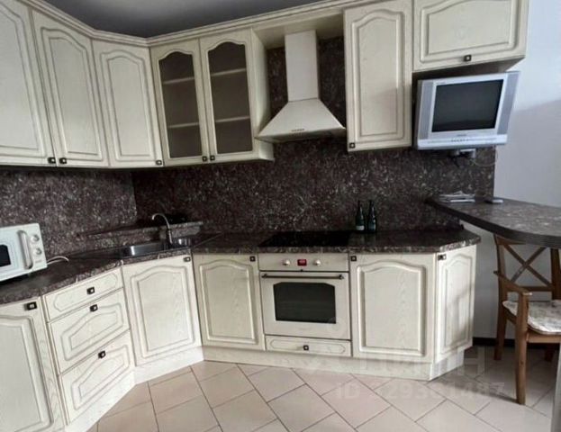 •кухню-столовую-гостиную, меблированную корпусной, столовой и мягкой мебелью, оснащенную встроенным кухонным гарнитуром и бытовой техникой: варочной панелью, вытяжкой, электрическим духовым шкафом, 2-х камерным холодильником;