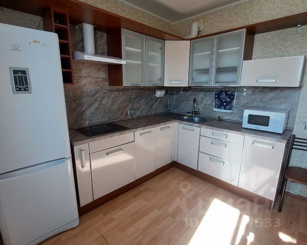 Кухня из натурального дерева. Большая каменная мойка, посудомоечная машинка Сименс. Холодильник Либхер. Газовые варочная панель и духовой шкаф. Тахта, на которой уютно смотреть телевизор. Большое окно, большой подоконник шириной 60 см и длиной 2 метра. Деревянный стеклопакет и деревянные жалюзи.