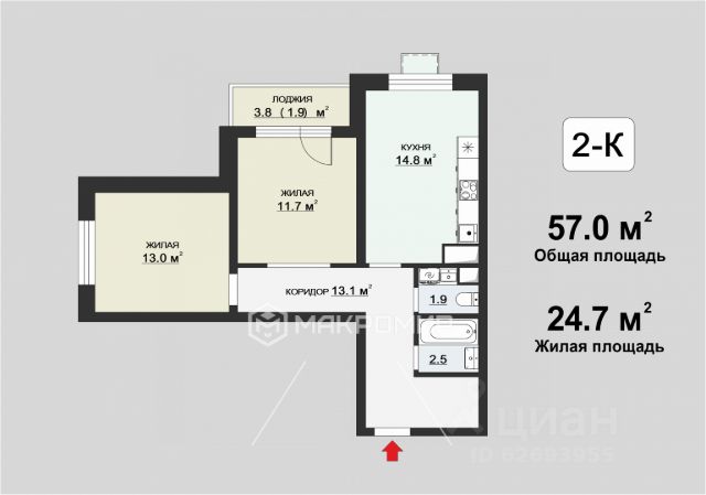 57 м² свободы: Простор для жизни, творчества и роста вашей семьи. Здесь каждый найдет свой уголок.