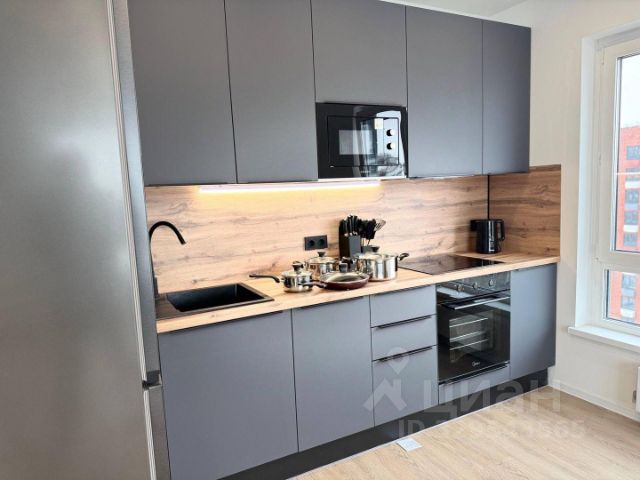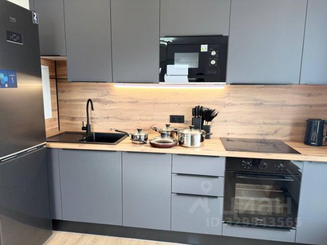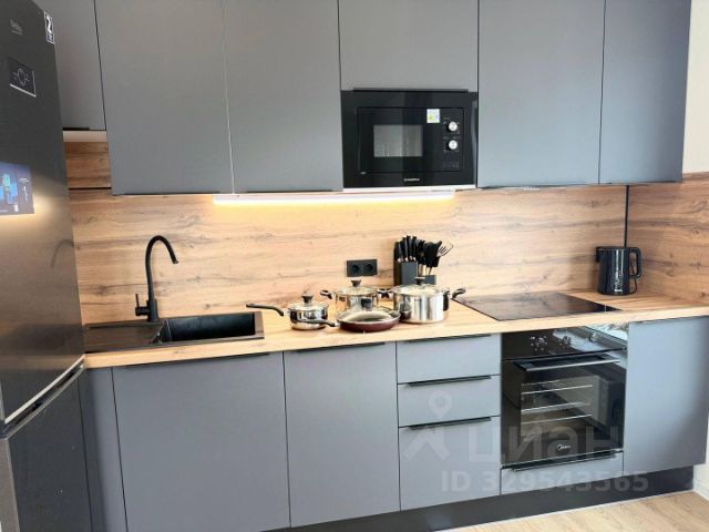 Квартира полностью готова для комфортного проживания, просторная кухня 14 кв.м., комната 17 кв.м., совмещенный санузел, квартира оборудована всей необходимой мебелью и бытовой техникой, есть кондиционер, телевизор, стиральная машина, холодильник, духовой шкаф, варочная панель, микроволновая печь, wi-fi.