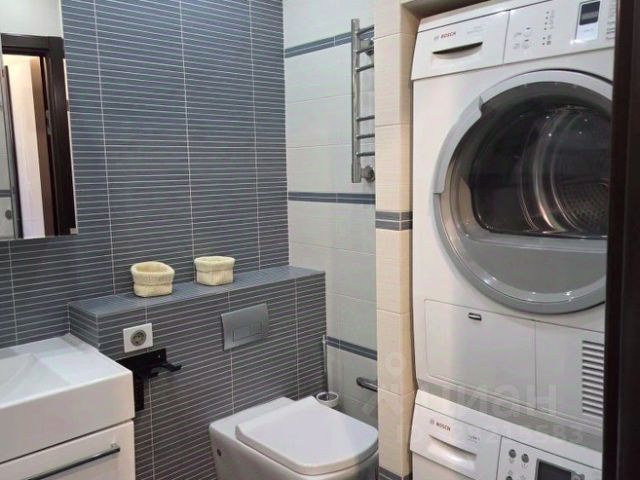 Чистенькая ванна. И для удобства шкафчики и стиральная машина Samsung. Все на столько сделано со вкусом,будете себя чувствовать как дома.
