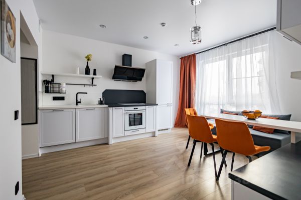 Квартира с евроремонтом, полностью готова к проживанию. В комнатах и на кухне есть вся необходимая мебель, а также современная техника: кондиционер, холодильник, посудомоечная и стиральная машины, телевизор. Санузел совмещённый, оборудован ванной. Высота потолков — 2,8 метра, что добавляет уюта и тепла в пространство.