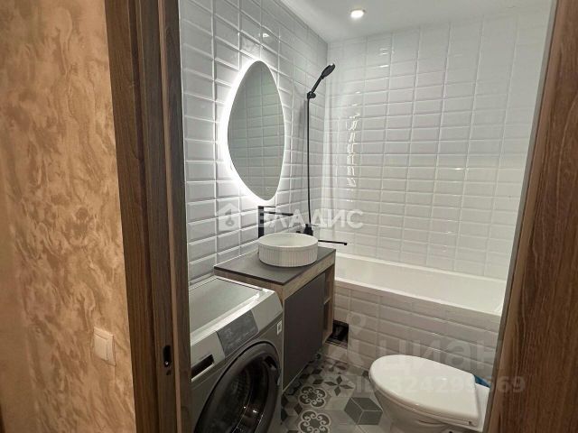 Техника: большой встроенный двухдверный холодильник с морозилкой, индукционная плита, духовка, вытяжка, микроволновка, RGB-подсветка, посудомоечная машина и увлажнитель с подключением к Умному дому, стиральная машина, телевизор, , зеркало с подсветкой в ванной.