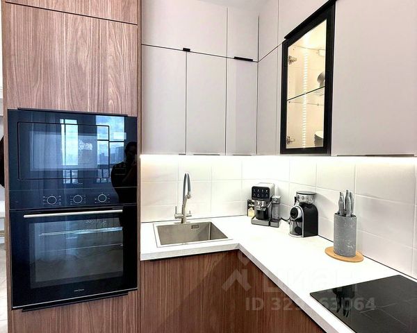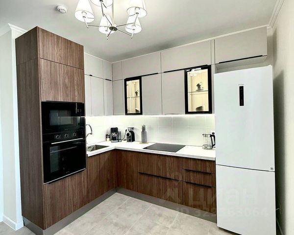 На кухне встроена мебель от Кухни Марии, электроплита и духовка, большой холодильник.