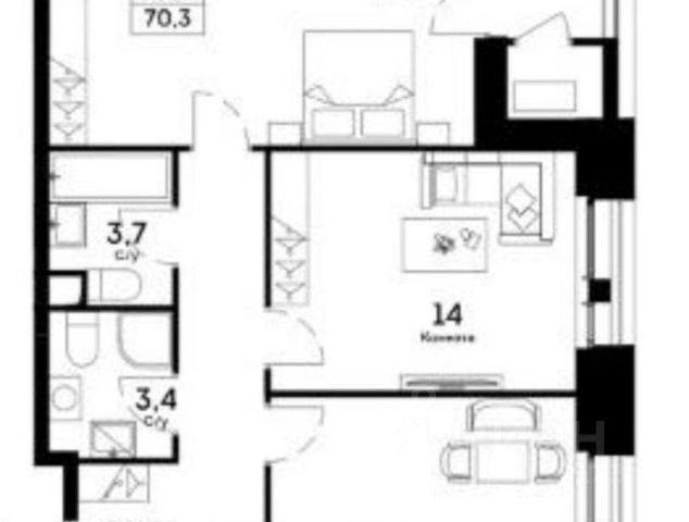 - Две раздельные комнаты, одна из комнат с большим, угловым, французским окном с пол. С панорамными видами на Москву