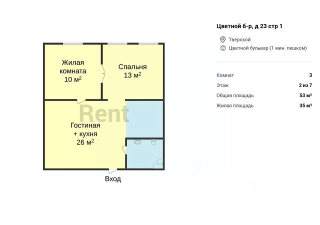 от метр Цветной бульвар 12 минут ходьбы