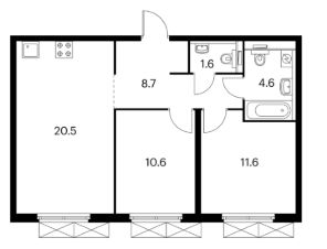От года, комм. платежи включены (без счётчиков), без комиссии, залог 229 990 ₽