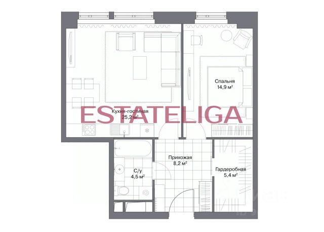 От года, комм. платежи включены (без счётчиков), без комиссии, залог 153 990 ₽