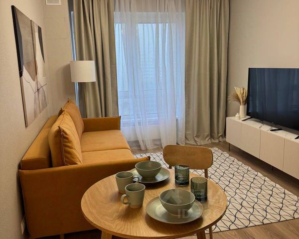 Сдаётся после дизайнерского ремонта уютная квартира- евродвушка в 10 минутах на машине от метро Каширская, в пешей доступности от станции Москворечье, в ЖК бизнес класса "Каширка. Like". Закрытый двор с детской и спортивной площадками, наземная и подземная парковки. Мебель и техника- все абсолютно новое! Квартира оснащена всей необходимой бытовой техникой и мебелью: просторная кухня- гостиная: встроенный кухонный гарнитур, варочная панель, духовой шкаф, встроенная СВЧ, вытяжка, двухкамерный холодильник, кондиционер, барный стол и стулья, удобный угловой раскладной диван, в спальне - полноценная двуспальная кровать с ортопедическим матрасом, тумбочки, кондиционер, большой шкаф- купе. Отдельная гардеробная! Лоджия. Совмещенный санузел с душевой кабиной и современной стиральной машиной. Окна выходят в уютный двор, в противоположную сторону от шоссе. •Предложение для 1-2 взрослых человек, без детей, без домашних питомцев. Только на длительный срок! • Договор с собственником на 11 месяцев с дальнейшей пролонгацией. • Оплата за месяц + вода, электричество по счетчикам. Депозит. Комиссия 50% по факту заключения договора с собственником. Показы по предварительной договоренности. Звоните или пишите.