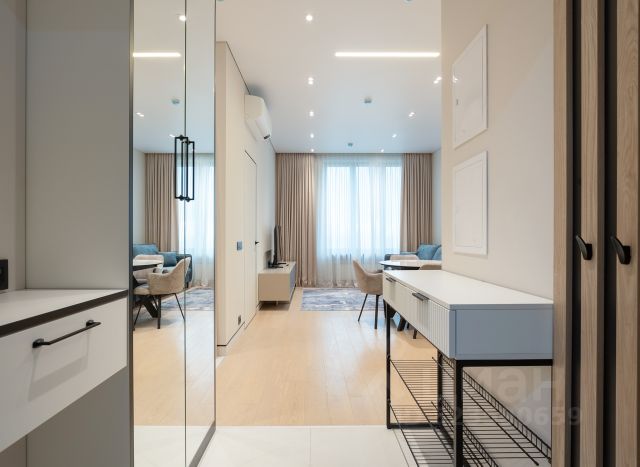 В прихожей установлен вместительный шкаф-купе mr.doors с зеркальной мозаикой, установлена дорогая входная дверь с надёжными замками. Две хрустальные люстры в стиле "стременная классика".