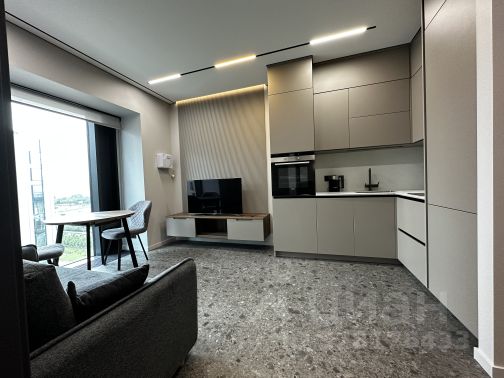 Кухня-гостинная: Посудомойка, микроволновка, большой холодильник, варочная панель, духовой шкаф, вытяжка, тихая стиральная машина на 5кг, телевизор, большой раскладной диван, стол со стульями, кондиционер. На полу плитка с теплым полом. встроенный фильтр для питьевой воды и вся необходимая посуда.