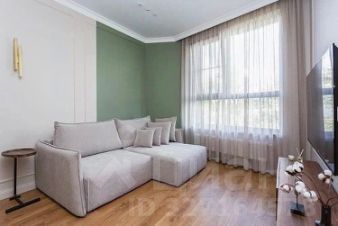 В квартире сделан дизайнерский ремонт, что позволило сделать не только просторный зал, переходящий в кухню, но и разместить вместительную гардеробную, вполне большую ванную, а также отдельную постирочную.