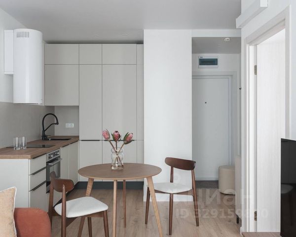 Интерьер квартиры выполнен в современном минималистичном стиле: светлые пастельные оттенки, аккуратный декор и продуманная планировка создают спокойную и уютную атмосферу. Из окон открывается приятный вид на лес.