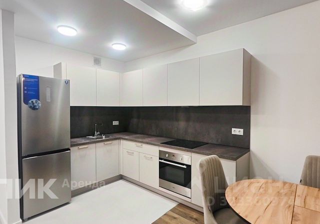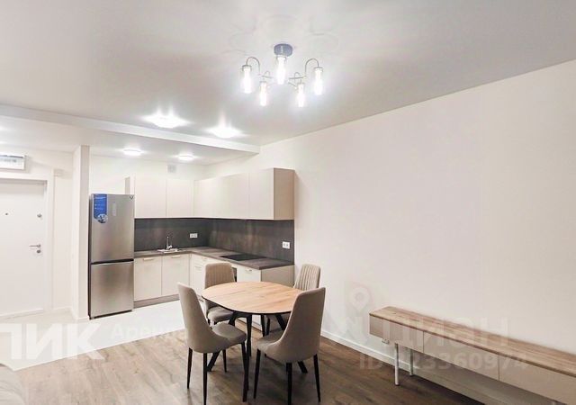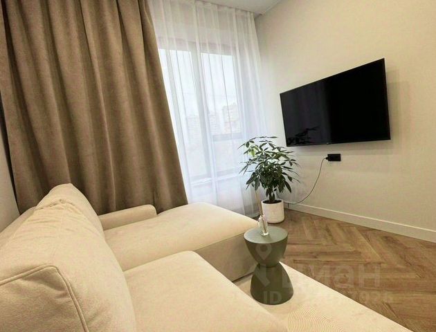 Предлагается в аренду 2-комнатная квартира 4001 с евро планировкой (кухня-гостиная + 1 спальня) с лоджией (5,3м2), высокими потолками площадью 57 м2, расположенная на втором этаже нового арендного дома класса Матч Поинт. Окна апартаментов выходят на улицу Василисы Кожиной. Современный эргономичный дизайн, мебель европейского производства, вся необходимая техника, разработанная с использованием умных технологий. Просторная кухня-гостиная оснащена встроенной техникой фирмы Hotpoint: 2-х камерным холодильником, варочной 4-х комфорочной панелью, духовым шкафом, посудомоечной машиной и вытяжкой. При входе в апартаменты вместительная гардеробная комната (3,6 м2), пуф, массив которого выполнен из бука и хвойных пород, материал обивки - ткань "гусиная лапка", панель вешалка. Зона кухни оборудована комплектом кухонной мебели с белыми деревянными фасадами, стильной барной стойкой и барными стульями на две персоны. В апартаментах предусмотрены два спальных места: в гостиной двуспальный раскладной диван (190 см * 150 см, механизм "еврокнижка", тканевая обивка Casain piain); в спальне большая кровать (180 см *200 см) с мягким изголовьем и матрасом, выполненным из бельгийского материала с ортопедическим эффектом. Благодаря 5-ти зональному пружинному блоку матраса Ваш позвоночник будет получать превосходную поддержку. Помимо кровати в спальне из мебели есть прикроватные тумбочки со стильными подвесными светильниками над ними, шкаф с белыми премиальными глянцевыми фасадами и зеркалами (вся мебель фирмы Permo, Италия). Чтобы ничего не отвлекало от здорового сна - плазменный TV от Panasonic с TV тумбой дизайнеры разместили в гостиной. Для Вашего комфорта в каждой комнате установлен кондиционер. На окнах помимо тюли есть портьеры Design&Colors, SOLKLIMA DESEN. Совмещенный санузел оборудован ванной и раковиной, вместительной и удобной в использовании стиральной машиной, большим зеркалом с подсветкой.