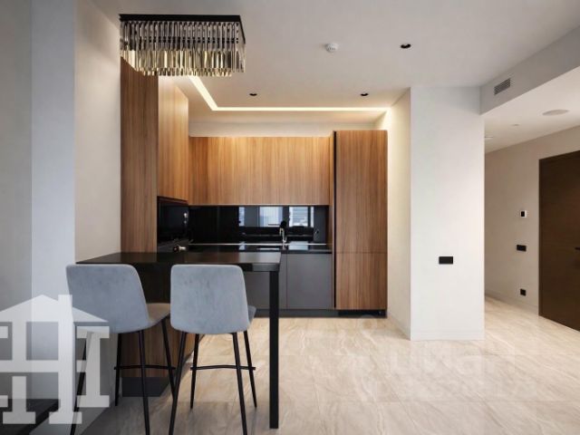 Кухня оборудована по последнему слову техники: помимо стильного кухонного гарнитура, индукционной плиты с мощной вытяжкой и холодильника, имеются духовой шкаф, свч и посудомоечная машина. Рядом расположена обеденная зона с столом и плазменный телевизор, диван раскладной. Установлены: теплый пол, кондиционирование (приточно-вытяжная система). В спальне шикарная двуспальная кровать с ортопедическим матрасом, 2 прикроватные тумбы, стол. Гардеробная комната вместительная с шкафами и подсветкой. Санузел с ванной оборудован качественной сантехникой Villeroy & Boch . Санузел совмещен, в ванной стеклянный экран от брызг, зеркало с удобной подсветкой, раковина для умывания, стиральная машина.