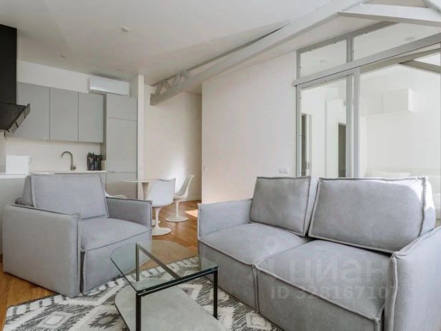 Планировка: кухня, гостиная, спальня, полноценная ванная комната с душевой кабиной и ванной, а также гостевой санузел, балкон. Есть гардеробная комната. Общая площадь - 120 кв.м. Современный ремонт выполнен в уникальном авторском стиле с использованием высококачественных материалов. Квартира укомплектована всей необходимой мебелью (Ligne Roset, Philippe Starck) и техникой и полностью готова к заселению. Есть настоящий действующий камин. Окна выходят в спокойный, тихий двор.