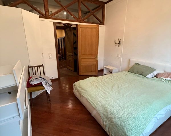Спальня - кровать 1,6*2 метра с новым матрасом, много мест хранения. Удобное большое рабочее место у окна (возможно для двоих). Шкаф, телевизор, прикроватная тумба